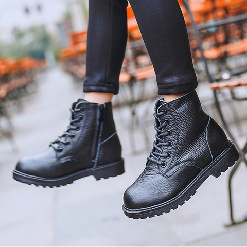 Stivali da ragazza stile occidentale in vera pelle di vacchetta stile Korean inverno cotone corto piatto con soletta in gomma leggera